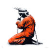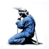 On a stunning blue background with metallic gold bags of dollars the print is called “The Council of Monkeys” and is based on the monumental street piece Goin put up on the Black Duke of Lancaster ship in November 2012.